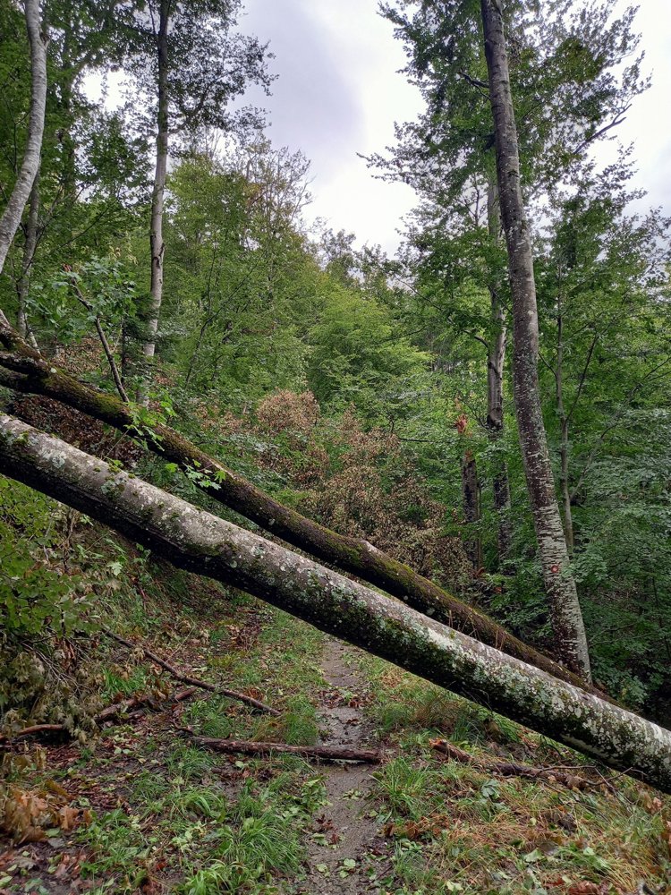 Kao posljedica nevremena u šumi je veliki broj izvaljenog drveća i puknutih grana, a stanje na svim planinarskim stazama koje održava HPD Strmac je manje ili više kaotično. Staze su teško prohodne na pojedinim dionicama, a veliki broj markacija je uništen. Kako i ostale tako su stradale i staze na kojima smo prošli mjesec završili obnovu.