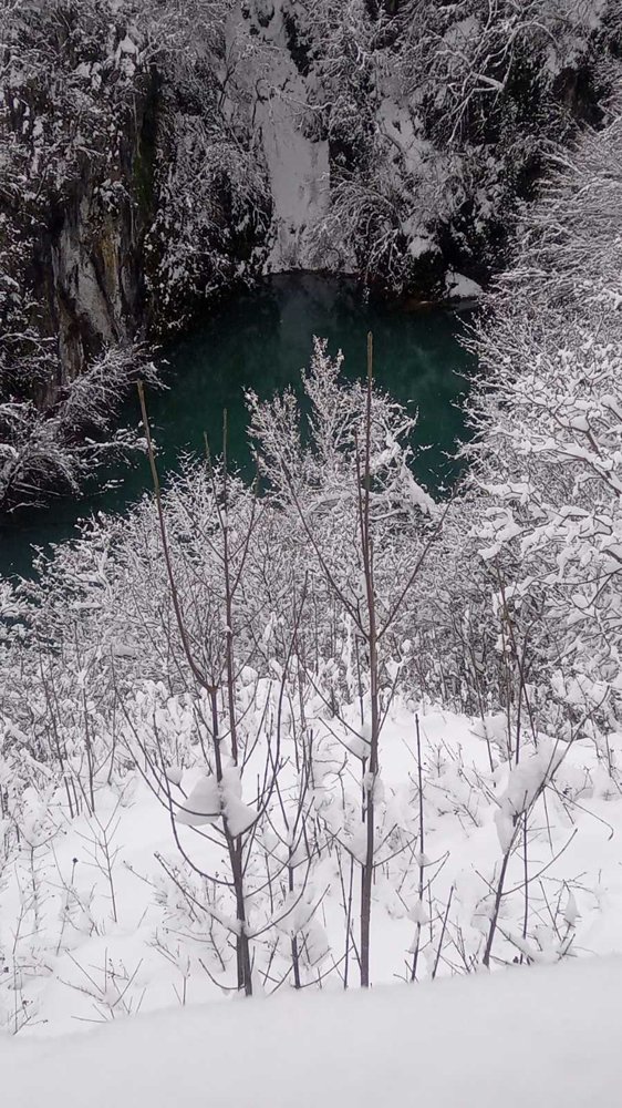A šta da mu kažem… Da, čovječe s lopatom negdje oko Krnjaka, u našem plemenu se našlo četrdesetak duša dovoljno ludih da na ovakav dan i prognozu sjednu u autobus i upute se na izlet na stazu uz rijeku Slunjčicu koji nam je osmislio naš Krešo, ljubitelj vidikovaca i vodenih čarolija. Da, pridružilo nam se i 5 dragih prijatelja iz PD Zmajevac, Novska, jednako spremnih na ovu avanturu – nismo mi jedini tako odvažni i odlučni. Snijeg nam je diktirao planove, odlučio umjesto nas, pa nas je Krešo umjesto do izvora Tounjčice odlučio odvesti do Drežnik Grada i okolnih vidikovaca na Korani. Prtili smo sretni kao mala djeca - snježne šetnje su nama u nizinama stvarno postale rijetka atrakcija. Osvojili smo Stari grad Drežnik, snimili stanje na obližnjoj stazici, spustili se do Korane, popeli se do vidikovca. Hodanje po snijegu je sasvim solidno nadomjestilo nedostatak nekih ozbiljnijih uspona. Nastavili smo turu po bijeloj bajci spuštajući se s ličke magistrale stazom do izvora Slunjčice – izgledao je kao dragi kamen očaravajuće zelene boje na prstenu od snijegom prekrivenih grana. Uz na mjestima mirnu na mjestima pomalo divlju rječicu (umanjenica samo zbog duljine, nikako zbog karaktera) hodamo do Rastoka. Čista ljepota postojanja. Smaragdna rječica se kao sjajna ukrasna nit na čisto bijeloj snježnoj tkanini probijala do svog ušća, a mi smo svjedočili toj tišini, tom žuboru, toj ljepoti, toj bjelini. Vrijedilo je, o kako je vrijedilo!