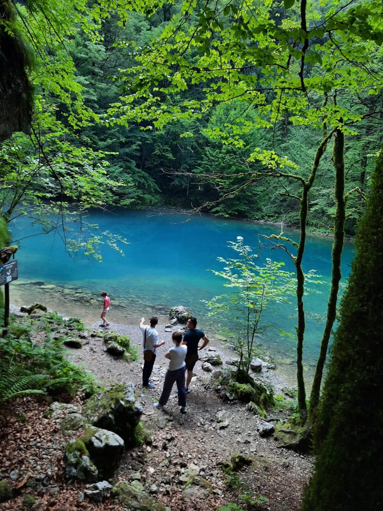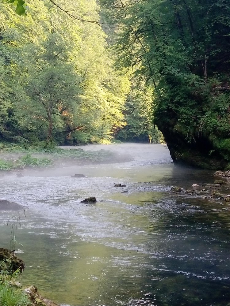 Nakon srdačnog dočeka, odlučio nam je pokazati goranski kraj, njegove ljepote te za taj dan izvor rijeke Kupe. Do izvora Kupe moguće je doći preko sela Razloge ili iz suprotnog smjera preko sela Kupari odakle smo mi išli. Uska cesta vodi neprestano kroz šumu gdje prolazimo par malenih sela s nekoliko kuća, uglavnom nenastanjenih, s ponekim starim starosjediocem ili su to uglavnom vikend posjetitelji. Autom se može do prijavnice NP Risnjak gdje se kupuje karta i dalje se mora pješke. Ulaznica je 40kn. Uska valovita cesta prelazi u makadam, i vodi kroz šumu uz rijeku Kupu i dolazimo do jedne livade na kojoj se nalazi Rodna kuća rijeke Kupe, koja služi kao muzej u vlasništvu NP. Odatle nastavljamo cca 1km uz Kupu do mosta preko Kupe. Tu već Kupa očarava svojom ljepotom boja, grgoljenjem, ribljim vrstama(pastrva i lipljan) i izmaglicom iznad vode(koja je zbog razlike u temperaturi vode i okoliša). Uređena staza vodi lijevom obalom do samog izvora. Izvor je u obliku jezerceta širine bar 50m i dužine oko 200m lijepe tirkizne boje. Kupa izvire iz dubine. Postoje 2 udubljenja(kao bunara) koja su istražena do 80m dubine. Nedavno su očišćena na taj način da su ronioci u dubini rezali i izvlačili debla bukve. Prerezana debla su izvučena sistemom balona i složena su pokraj samog izvora(30m kubnih). Izvor je zaštićen ogradama od drvenog pruća da stabla koja padnu ne otkližu u izvor. Minimalni pritisak vode je 1200 litara u sekundi, voda je hladna oko 7°C, a nadmorska visina je 321m. Gornji tok rijeke Kupe zbog bogatstva flore i faune, nazvan je i Čudesnom dolinom leptira. Postoji i priča kada bi bila velika magla nad vodom, da su ljudi čuli glasove vila i vilenjaka.