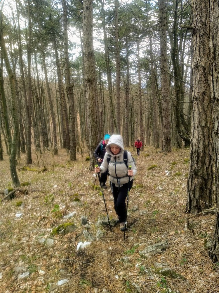 Parkiramo se u blizini Veličkog kamenoloma, otprilike u ravnini sa Starim gradom. Prvi vrh na koji smo se uputili je Mališćak, ali vrh je tu samo kao točka u kojoj izlet dijelimo u segmente, ništa više ni manje važan od područja kojim ćemo prolaziti. Turjak uz svoj uobičajeni mediteranski šarm časti nas proljetnicama. Of kors, gledaj, al' ne diraj. Izlaskom na Mališćak dočekuje nas hladan sjeverac. U skloništu rani ručak ili kasni doručak kako je koga "potrefilo" pa nema stajanja do Orahove vode. Na Orahovoj vodi raskoš. Šafrani. Bijeli, plavi, hibridni. Pasji zub, procjepak. Na Ivačkoj glavi kraća pauza pa se spuštamo prema sjeveru, zakrećemo na istok i vojnu cestu hvatamo pod Koprivnatim brdom. Povratak Jankovačkom cestom. Na Krečani kratica nije upotrebljiva zbog sječe, pod Padežkim visom spuštamo se u kanjon Veličanke, koji ako ćemo cijepidlačiti u ovom dijelu to još nije. Je kanjon, nije Veličanke. Staza nije baš u čestoj upotrebi, ali je lijepa. Još malo makadama i još manje asfalta i evo nas na ishodištu koje je postalo cilj današnjeg izleta.