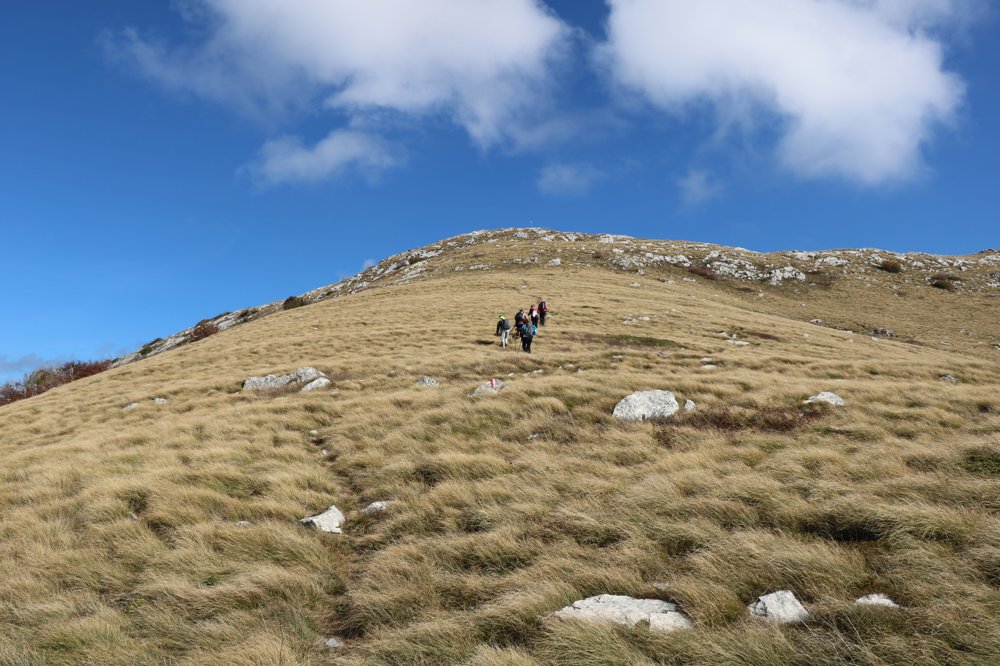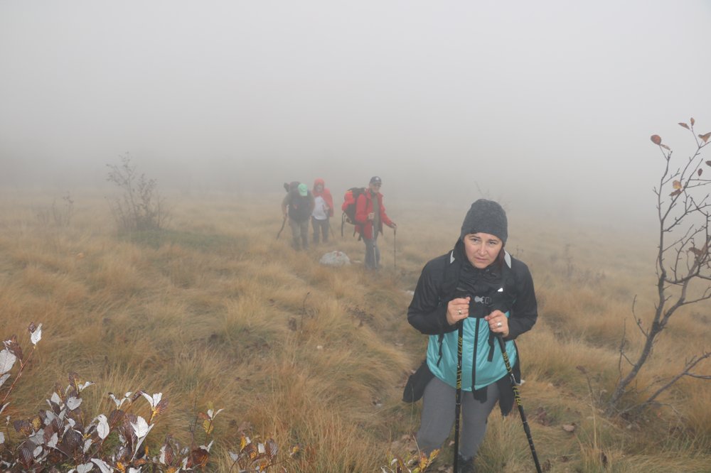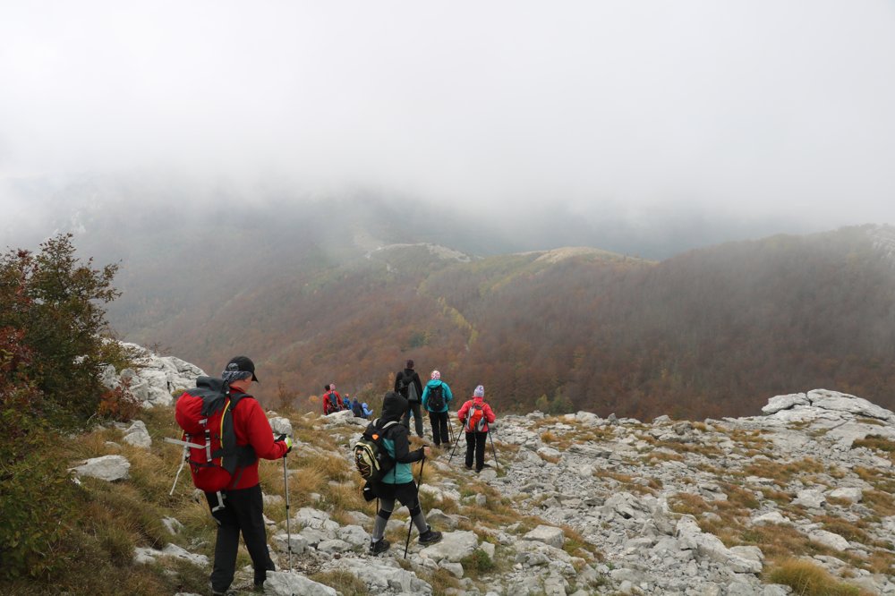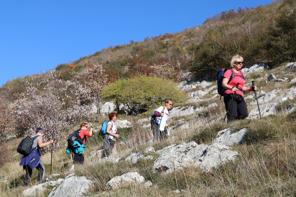 Bilo nas je ukupno 30 i dio puta smo bili zajedno a kasnije se razdvojili na „sporije“ i „napredne“. Ja sam bila u prvoj, naravno. Bilo nas je devetero, 7 Snjeguljica i 2 Patuljka. Ekipu su predvodili Branka Kušenić i dida Duša, imali smo i profesionalnog fotografa Mislava Sokić. Penjanje je bilo jako teško obzirom da nemam kondicije, u jednom trenu sam htijela i odustati ali uz ekipu pored mene to jednostavno nije dolazilo u obzir. Šuma u jesen je posebna i zanimljiva za razgledavanje. S drveća lišće još uvijek nije opalo pa su se u visinama mogle vidjeti prekrasne jesenjske boje. Šume nisu guste kao kod nas i na tlu ima dosta kamenja što otežava hodanje. Osim prekrasnog pejzaža uspjela sam pokupiti i koji mudri savjet o braku, djeci, kuhinji i zdravlju. Posebno me oduševila livada prije samog vrha. Trava je bila neobična, suha a opet tako meka i lagana. Pokoji veći kamen daje naslutiti da je stijena u blizini. Na Veliki Salikovac (1286 m) smo se popeli oko 12:30h. Naravno, ne moram reći da je to najviši vrh na koji sam se popela u životu. Osjećaj je neopisiv. Vidim sve... more, otok Pag, Gospić, čak i kuće na Pagu. Vrijeme je bilo predivno, sunce je obasjavalo sve oko mene a vjetar je bio taman. Niti mi je bilo vruće niti me šta boljelo. Nakon odmora i rakijice vraćamo se u Oštarije. Povratak nije bio jako naporan iako smo na nekim djelovima silazili na sva četiri pogona... U selu smo posjetili kamp Velebit koji je poznat po malim kućicama ukopanim u zemlju i prekrivenim travom- Crobbiton kućice- kućice za hobite gdje nas je gazda počastio rakijicom. Iako smo u hostel na večeru trebali stići par sati prije „napredne“ grupe stigli smo malo prije njih. Možda jer smo uživali u svakom koraku a možda zbog rakijice...U hostelu sam dobrih 10 minuta nagovarala konobara da nam ustupi tuševe i onda shvatila da se planinari ne tuširaju na putovanjima jer su svi redom odbili pa nisam htijela niti ja odskakati od ekipe. Kamp Prpa me ugodno iznenadio a posebno mi se svidjelo što imamo krevete (nisam ih očekivala uz vreće za spavanje). Ivančica Križan me naučila kako se presvlači u vreći za spavanje i kako svi odjednom izuvamo gojzerice da ne smrdimo jedni drugima... hvala Ivančice! Iako sam mislila da će tulum biti dugo u noć, svi smo već spavali u 21:30 h.