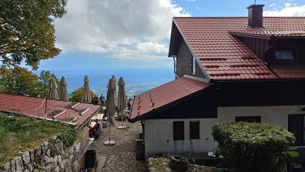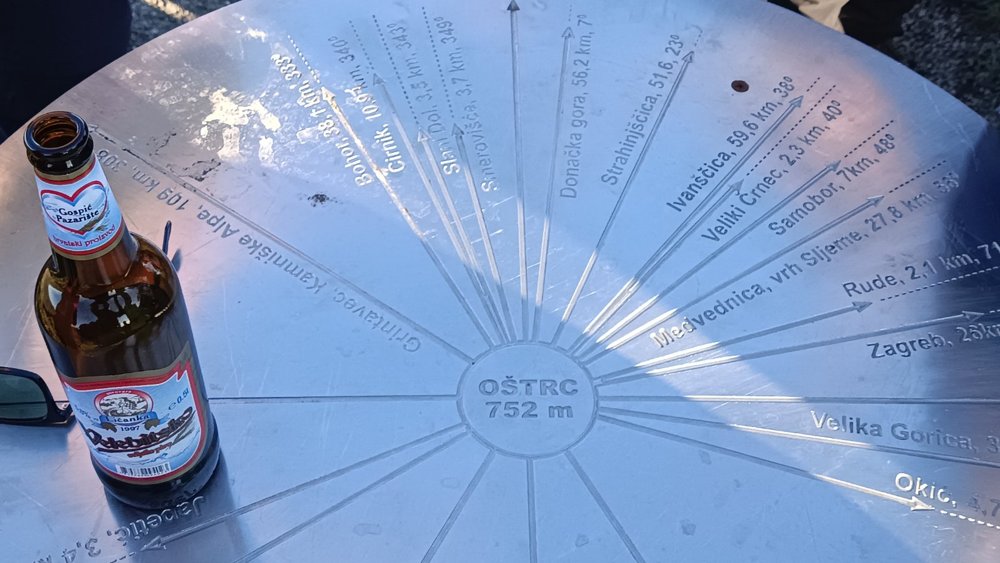 Prvo smo se popeli do jednog planinarskog doma u kojem je mirisao grah. Čika Kruno je rekao da još nismo gladni. Onda je čika Krešo donio puno piva. On je platio sve to ali zapravo to nije on platio nego netko drugi. Ja ne pijem pivo. Brzo smo se popeli na vrh Oštrc. S vrha smo vidjeli Klek i Svetu Geru. Nastavili smo planinariti zato što smo mi planinari.