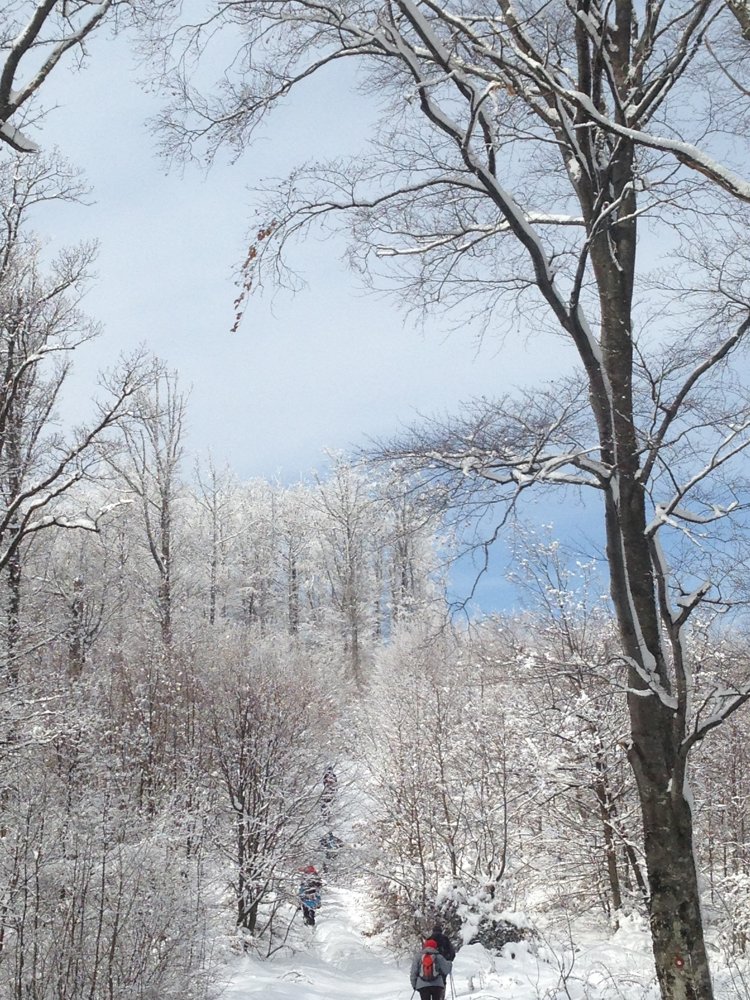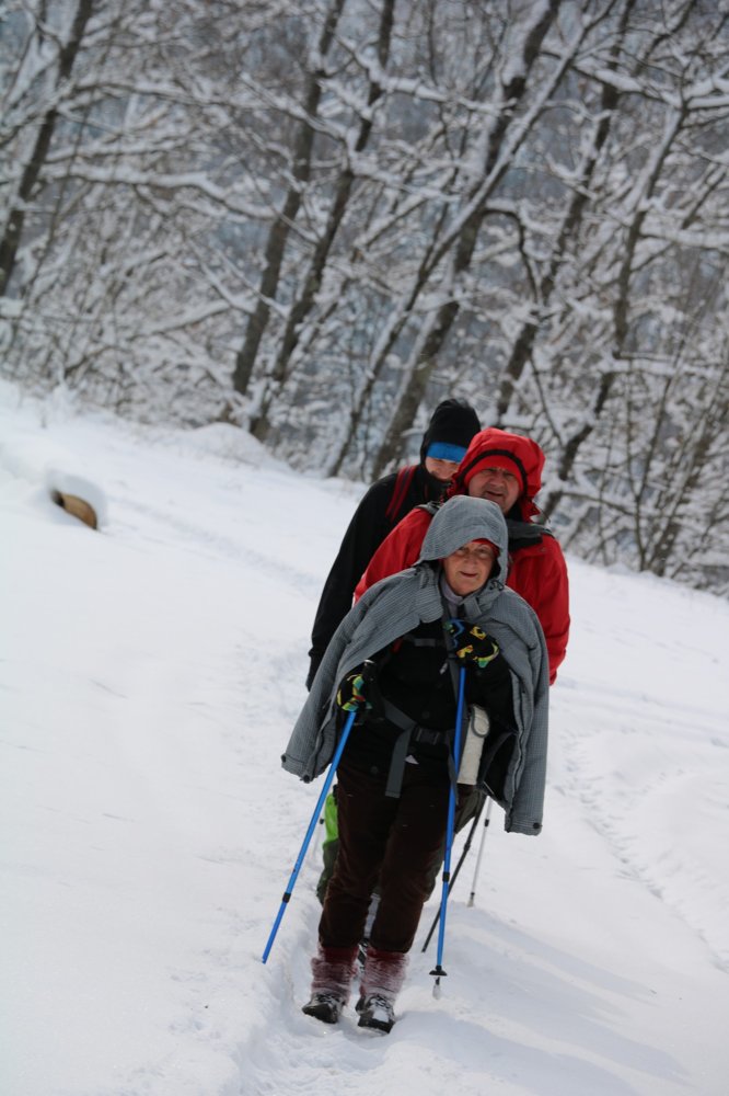 Osvanulo je lijepo nedjeljno jutro, hladno, zimsko - jedino u gradu nemamo osjećaj postojanja snijega. Okupljanje u domu na Strmcu, uz već uobičajenu brigu domara da dođemo u zagrijan prostor ispunjen mirisom kave. Pozdravi, pakiranja i krećemo Božikovačkom kosom put Psunja. Ekipu čini sretnih 13 planinara i jedan četveronožni pratitelj. Zaboravih spomenuti da je onaj osjećaj kako nema snijega, sada već, stvar prošlosti. Gamašna ekipa ide na čelo grupe - sami su si krivi što su se dobro opremili pa mogu prtiti stazu. I znate već kako to ide- užitak je počeo. Pomalo se raskopčavaju jakne, navikavamo se disati hladan zrak i počinje puni užitak druženja, snježne čarolije na svakoj grani i listu, plavetnilo neba, vjetrom nošena kitina sa drveća - po tko zna koji put, podsjetnik - život je lijep. I još - svuda oko tebe, prijatelji. Užitak dubokoga, prhkog snijega je pomalo zamarao grupu. Stoga je i prihvaćen prijedlog vodiča da ipak cijelu grupu ne forsiramo do Brezovog polja nego da sa lokaliteta Previt skrenemo ka Jastrebincu pa nazad prema Strmcu. Na Previtu smo organizirali pravo cool-buffet sa hladnim predjelom pa osnaženi prionuli nizbrdo.