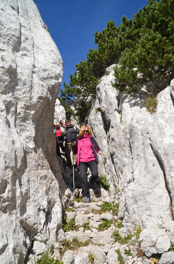 Zaljubljenici koji su ranije spomenuti su članovi HPD Strmac iz Nove Gradiške, a 30. rujna i 1. listopada 2017. proveli su u NP Sjeverni Velebit. Većina članova planinarskog društva već je iskusna i poznaju staze, manji broj sudionika prvi je put uživao u stjenovitim vrhuncima, nepreglednim livadama i gustim šumama moćnog Velebita, među kojima sam i ja pa su dojmovi još naglašeniji. Prvi dan obilježio je uspon do planinarskog doma od Babić Siče preko Ciganišta i Žive vodice, smještaj u dom Zavižan, a zatim hodanje dionicom Vučjak, Veliki Zavižan, Balinovac ( na kojem je bura pokazala zube unatoč prekrasnom pogledu na more i otoke), Zavižanska kosa. Drugi dan započeli smo vrlo rano hodajući Premužićevom stazom ( saznala sam da je g. Premužić rodom iz Kobaša obilježio gotovo cijelo prošlo stoljeće radom u šumama Gorskog kotara, a Slavonac je) uz obilazak vrhova Gromovača, Crikvena i Seravski vrh, do Alana. Nakon sedmosatnog hodanja uslijedila je nagrada u Senju – popodnevna kavica pa povratak kući.