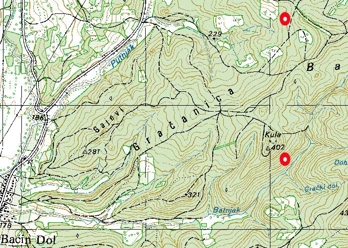 Mala kula. Još jedna građevina u samom selu Baćindol. Također veoma interesantna jer se čini kao da je građena betonom. Stari rimljani poznavali su tehniku gradnje betonom, koja vještina se u srednjem vijeku gubi, da bi se poslije ponovno otkrila. Dolina potoka Putnjaka, koji ide od centra Baćindola prema Gračanici ima rimskih ostataka, (stela, bolta od rimske cigle pronađena oko kilometar ispod Gračanice u potoku).