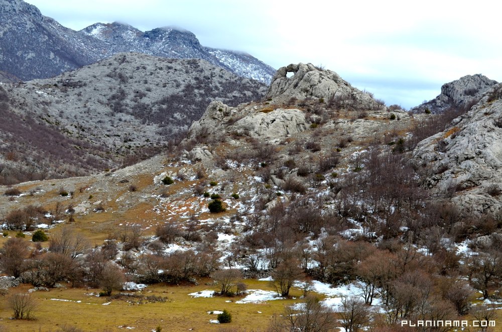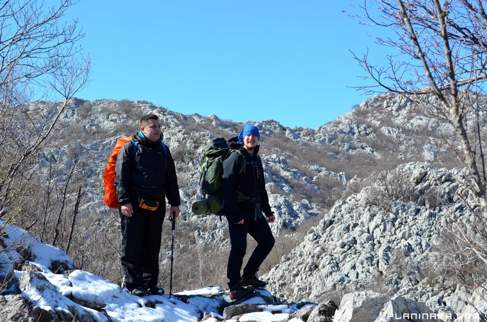 Jaka, na udare olujna bura povremeno me izbacuje iz ravnoteže, a moji suputnici da me stabiliziraju velikodušno nude 3 kg krumpira i 4 l tekućine – voda nije, pivo nije. I koliko god teško mi bilo da toliku žrtvu radi mene podnesu nisam mogao dozvoliti. Ispod Velike glavice malo snijega, a nakon spoja sa stazom preko Zagona pravi zimski ugođaj uz proljetno sunce. Poslije Sjauševca pred izlazak na Stap nanosi do jaja. Onome tko ih je ponio.